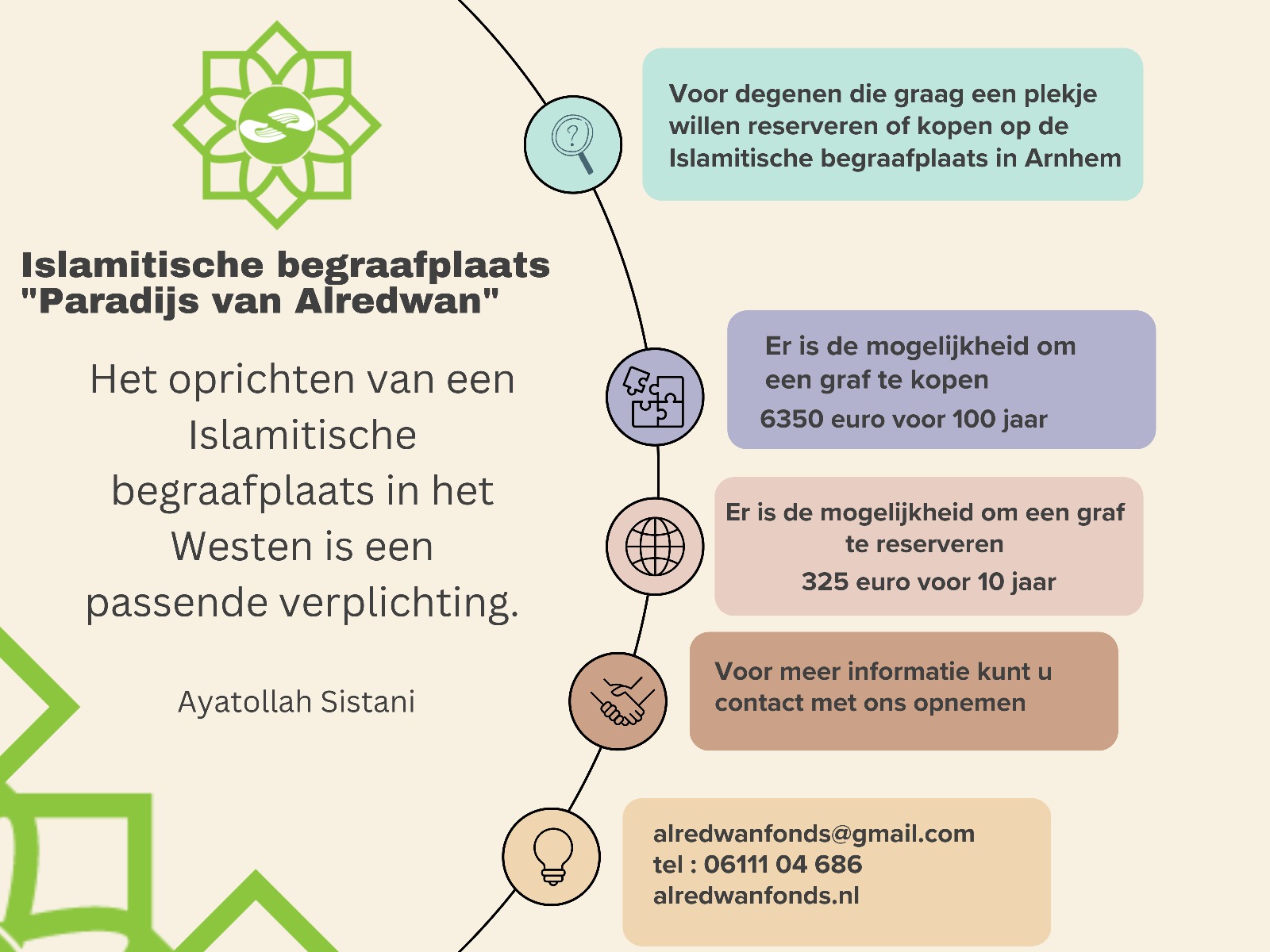 Alredwan Fonds is in de brede zin om hulp te bieden aan overledenen en hun gezinnen, zonder hierbij onderscheid te maken of deze deelmaken uit de Iraakse – of andere islamitische gemeenschappen in Nederland